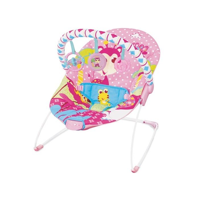 Cadeira de balanço musical e vibratória para acalmar o bebê, vem com arco de fácil remoção com 3 brinquedos divertidos para distrair o bebê e ajudá-lo em seu desenvolvimento.