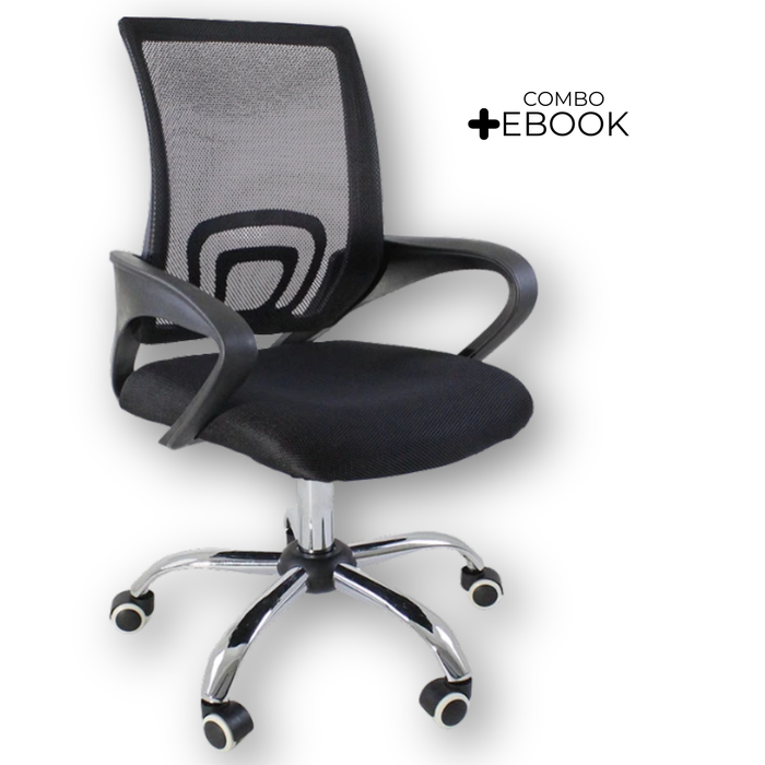 Cadeira de Escritorio Begonia Tela Mesh Ergonomica Giratoria + E-book Preto
