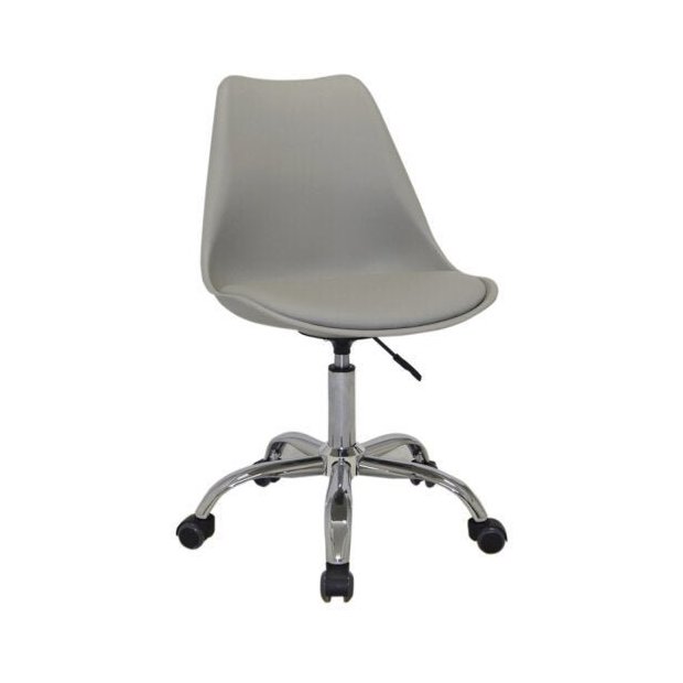 Simplicidade, estilo e resistência, em uma versão office. Cadeira giratória com ajuste de altura com pistão, com encosto e sem braços, com estrutura em polipropileno (PP) e estofamento revestido em poliuretano (PU), possui base estrela com rodízios.