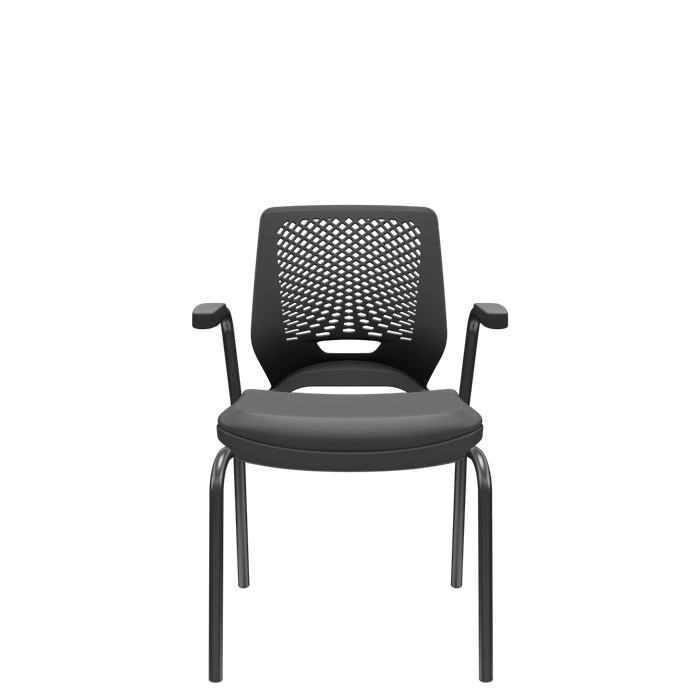 Cadeira de Escritório Fixa Aproximação 4 Pés com Braço Beezi Base Preta Encosto Preto Assento Facto preto