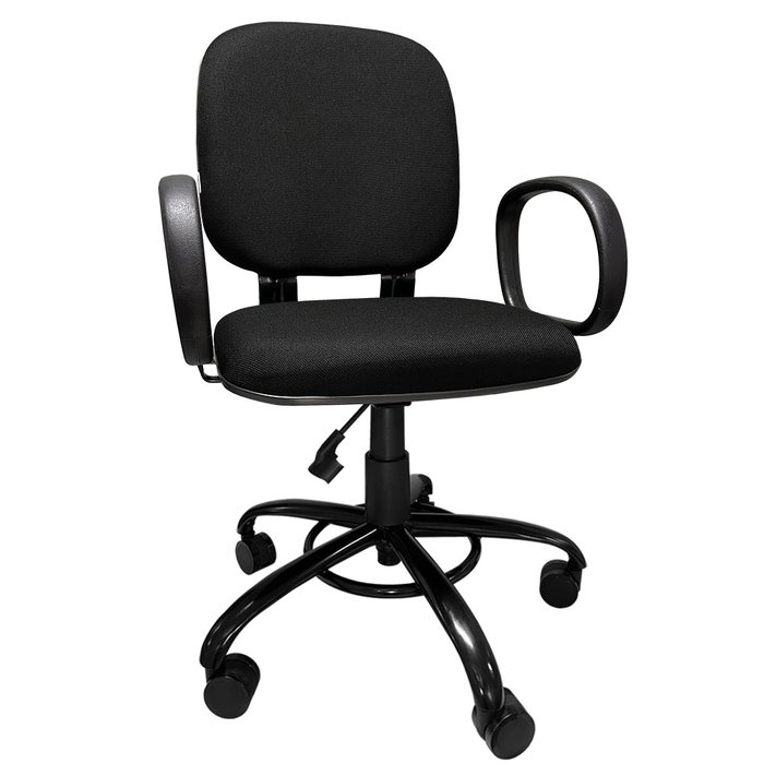 Cadeira de Escritório Giratória Reforçada 200 Kg para Obeso Po com Regulagem de Altura Tecido Preta