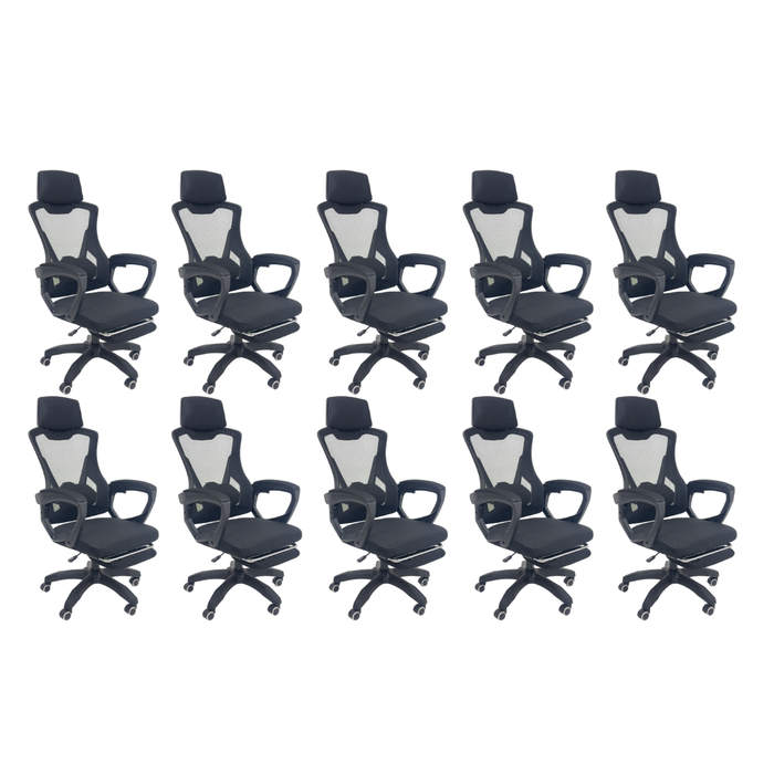 Design Presidencial e Confortável: Linha premium com visual moderno e elegante. Ergonomia e Suporte: Encosto com ajuste lombar para melhor postura durante o uso. Mobilidade e Praticidade: Giratória com altura ajustável e rodas para fácil movimentação. Conforto Completo: Apoio de cabeça fixo e apoio aos pés integrados. Alta Durabilidade: Estrutura robusta em polipropileno com acabamento em tela Mesh, garantindo ventilação e resistência. Reclinável: Mecanismo Back System para ajuste do encosto.