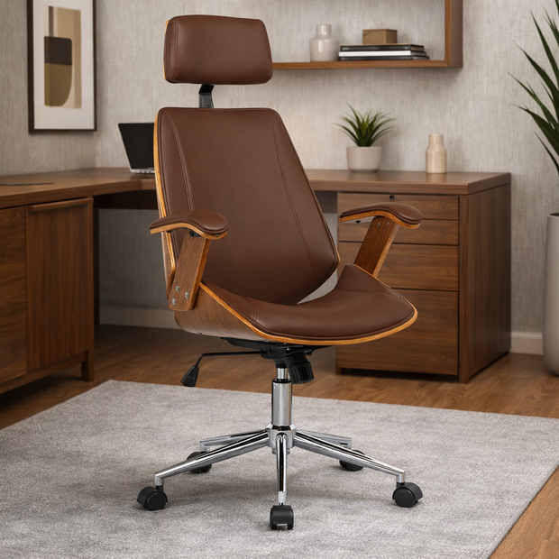 Cadeira de Escritório Presidente Giratória com Apoia Cabeça Office Lisboa Marrom