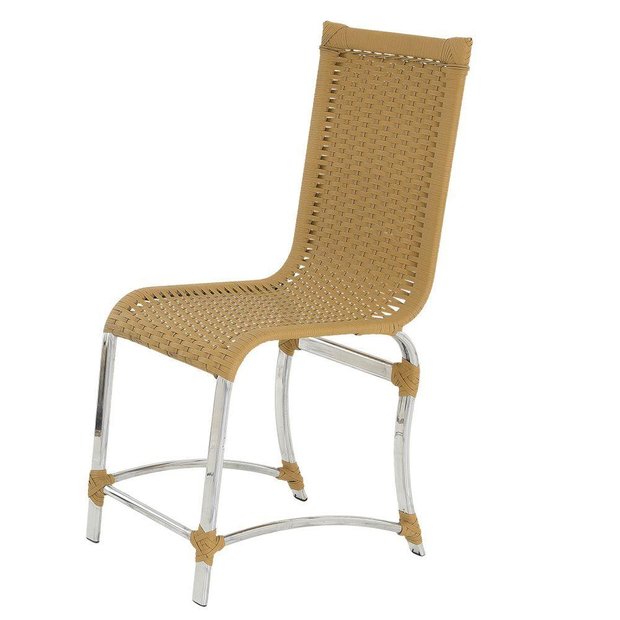 Cadeira De Jantar Em Alumínio Polido Para área Interna E Externa, Fibra Sintética Cor Ráfia