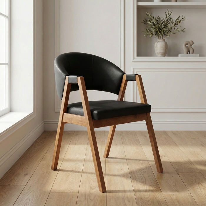 Cadeira de Jantar Estofada em Madeira Maciça e Courino Hibisco Preto