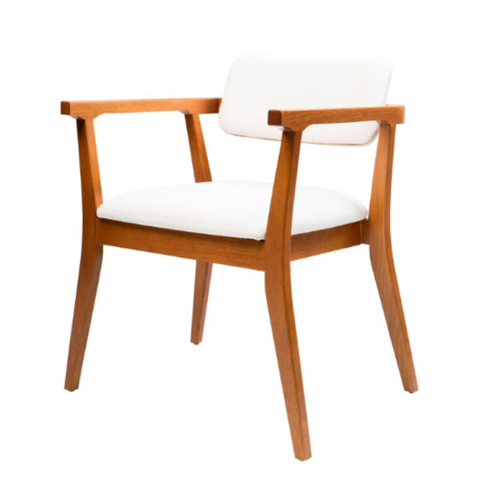 Cadeira de Jantar Giovana 59x82x61cm Braços Altos Madeira Maciça Estofado Linho Bege