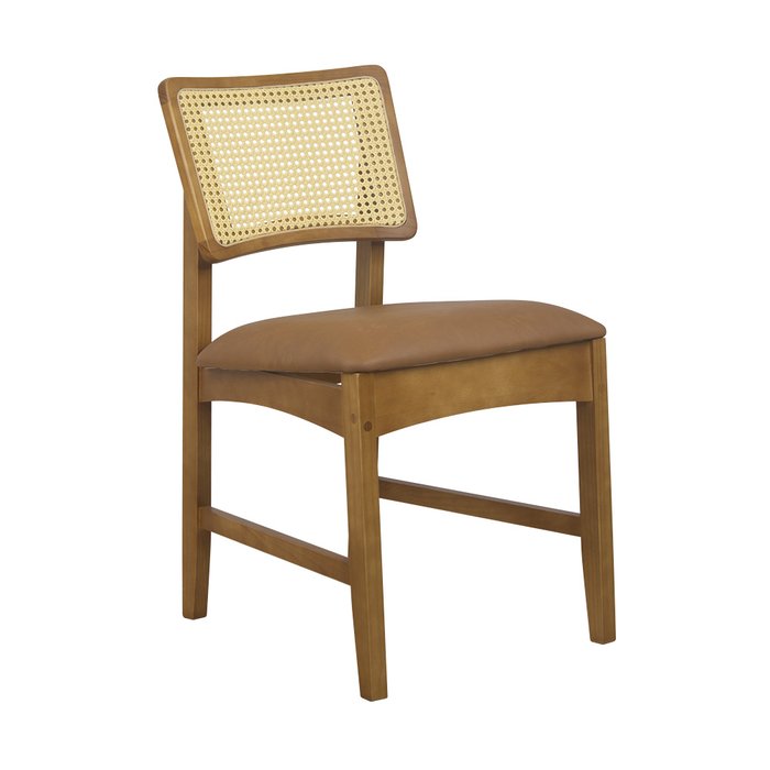 Cadeira de Jantar Hanna com Tela Natural e Couríssimo Caramelo - Wp 59097 Amêndoa