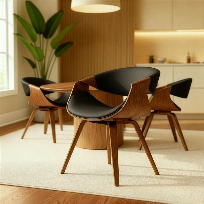 Com uma estrutura em madeira multilaminada, a Cadeira Nicole apresenta um assento e encosto estofados, disponíveis em poliuretano ou linho, proporcionando uma experiência de uso agradável. A base giratória em madeira adiciona um toque de funcionalidade, permitindo uma movimentação prática sem sair do lugar.