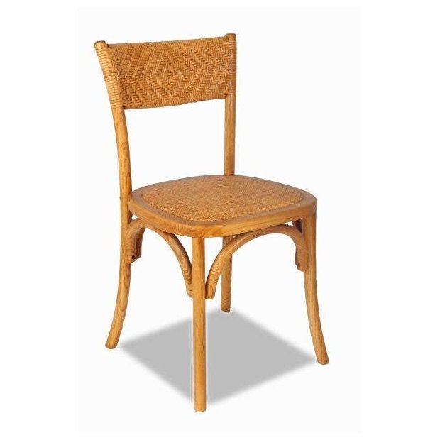 Cadeira de jantar fabricada com madeira de carvalho; o assento é em fibra natural rattan, o encosto é curvado, acabamento em verniz com tingidor. Estilo, design, praticidade e conforto para o seu lar.