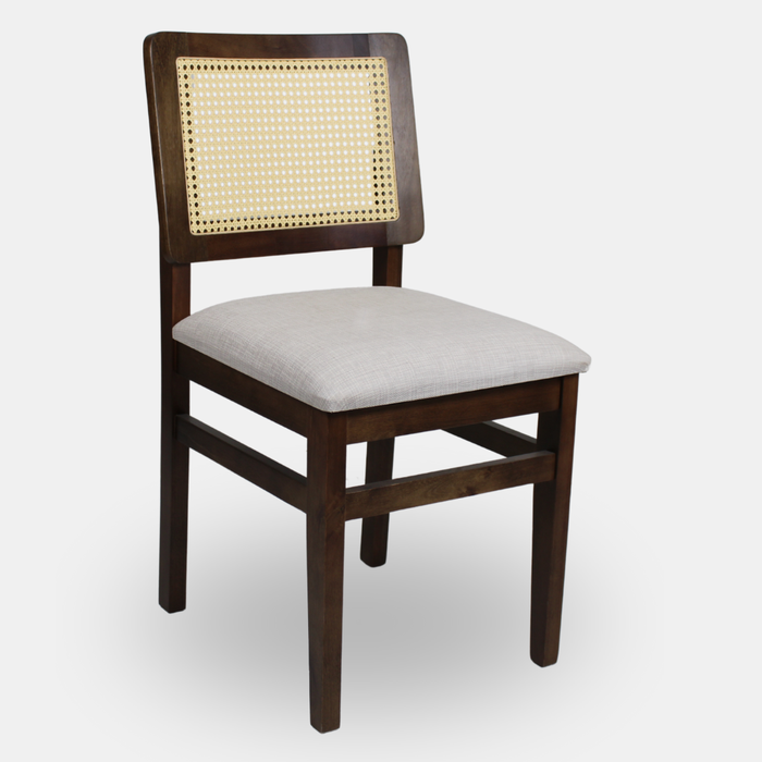 Cadeira de Madeira com Telinha Bogotá Cor Imbuia Estofado Facto Garden Bege Acinzentado