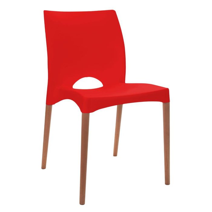 Cadeira de Plástico Pés Madeira Sala Jantar Cannes Vermelha