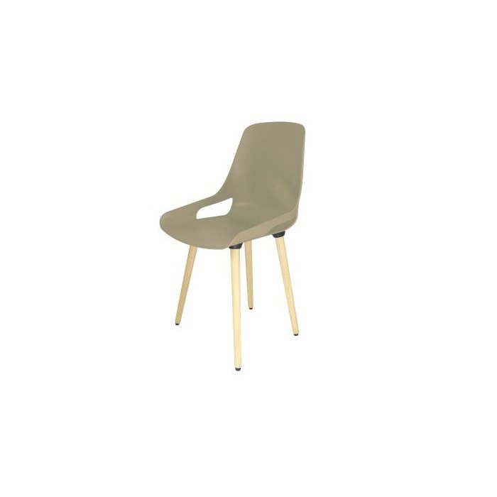 Cadeira de Plástico sem Braço Bege com Pé de Madeira