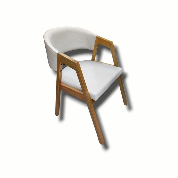 Cadeira de Poltrona Minsk Estofada em Madeira Maciça de Eucalipto Amêndoa Linho Cru