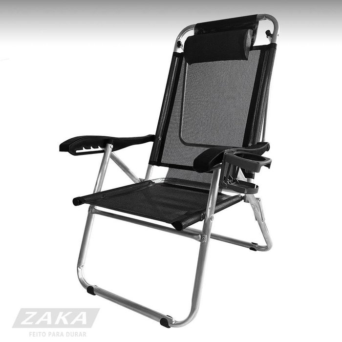 Cadeira de Praia Alum Up Line Preta Zaka 120kg 5 Posições