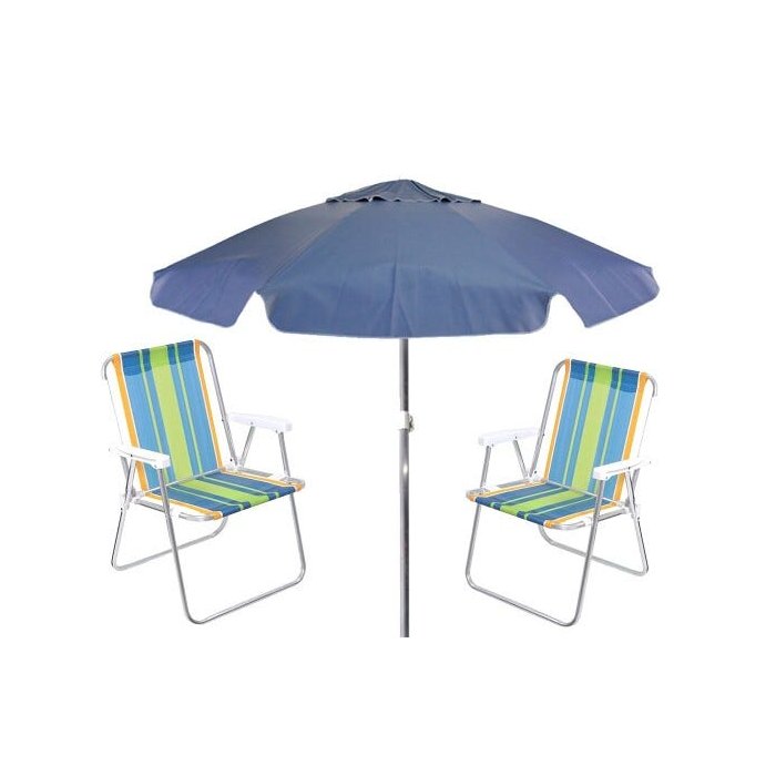 Cadeira De Praia Alumínio Dobrável 2 un. c/ Guarda-sol 1,6m
