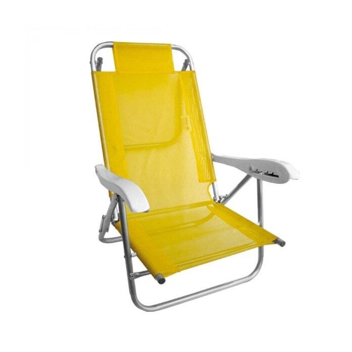 Cadeira de Praia Alumínio Reclinável com Apoio Sanet Ronchetti Amarelo