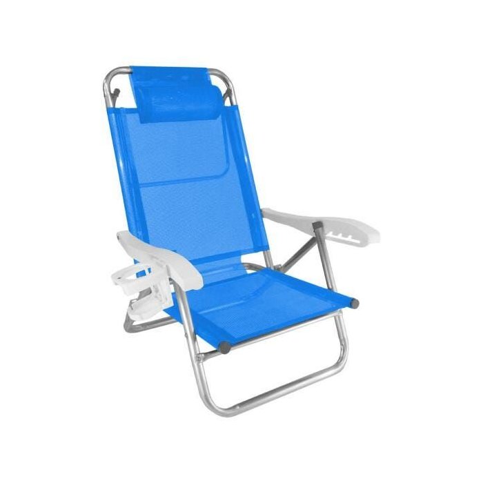 Cadeira de Praia Alumínio Reforçada 5 Posições Top Line Azul Zaka 120 Kg