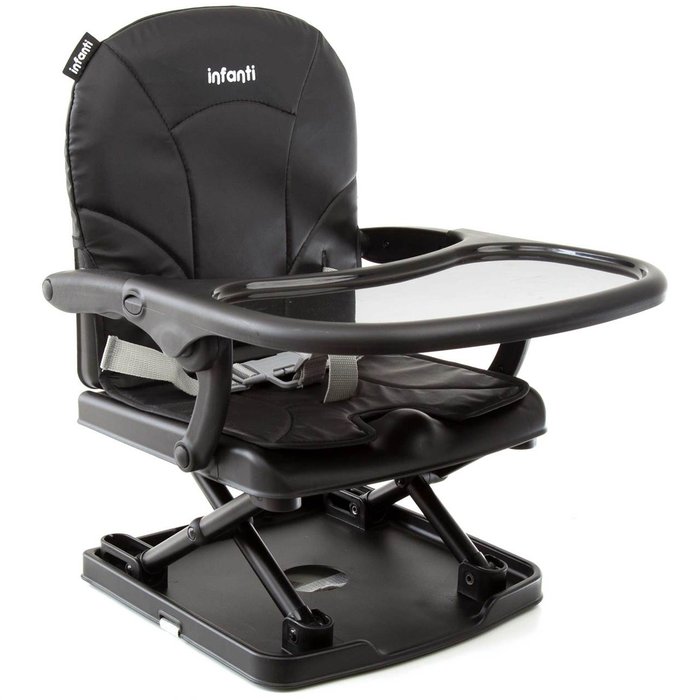 Adapta-se facilmente as cadeiras comuns de adulto, com tiras de fixação para maior segurança, ajustável em 3 posições de altura, cintos de segurança para o bebê, bandeja removível e fechamento muito fácil e ultra-compacto com alça para transporte. Capa protetora do assento, acolchoada para maior conforto, impermeável, facilmente removível e lavável.