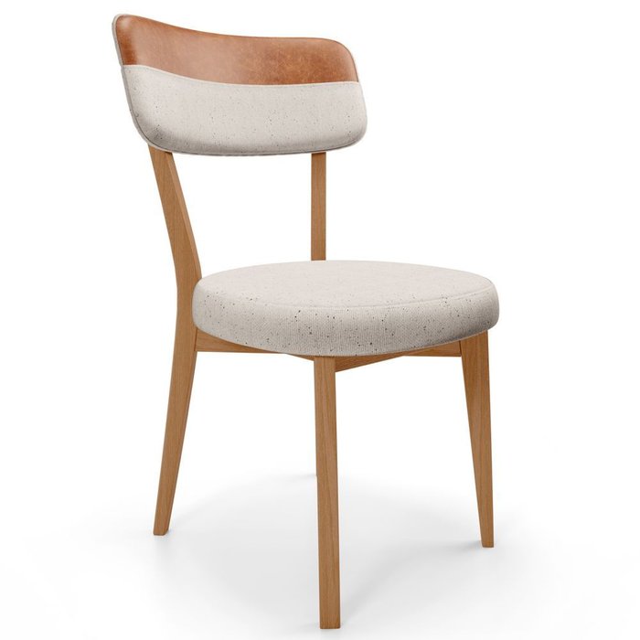 Cadeira Decorativa Estofada Sala Jantar Base Madeira Roy L02 Couríssimo Camel Linho Cru - Lyam Camel e Cru