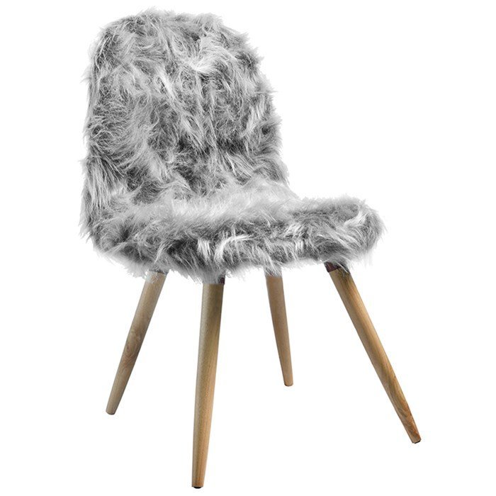 Cadeira Decorativa Rolg Pelo Sintetico Cinza Pes Madeira Sone Cinza