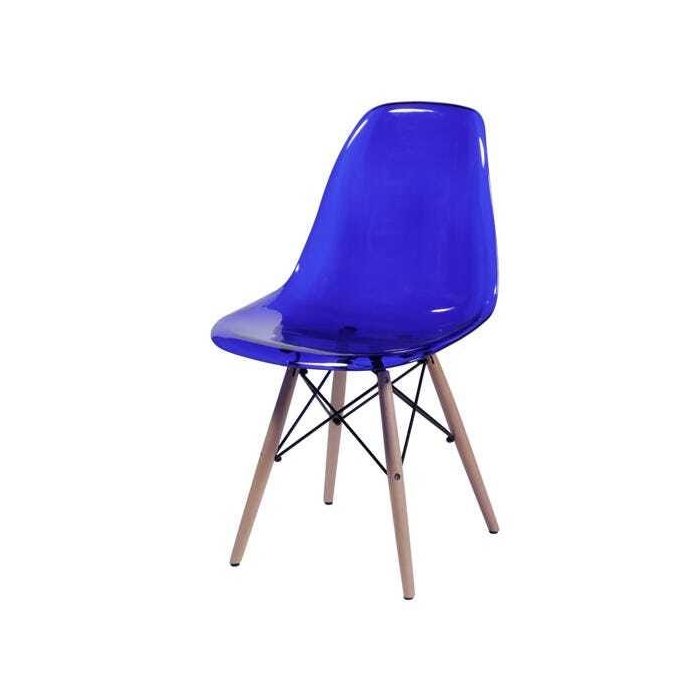 Cadeira Dkr Charles e Ray Eames Policarbonato Base Wood Azul Bic Azul Bic