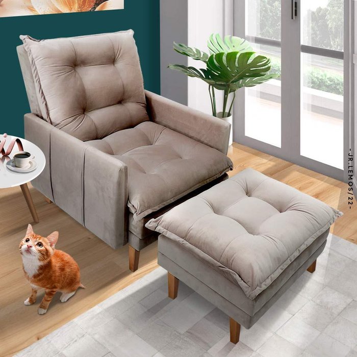 Cadeira do Papai Reclinável com Puff Veludo Bege Lisboa Jm Móveis