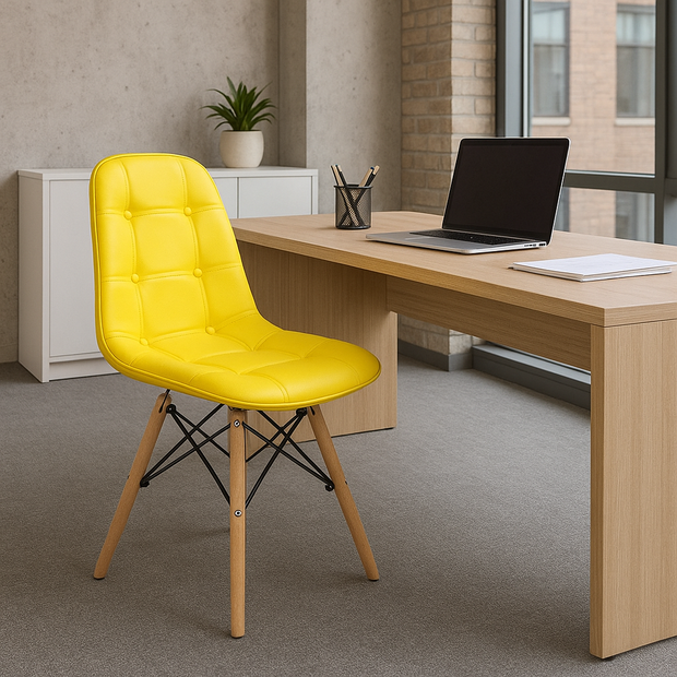 Cadeira Eames Botonê Amarela - Base Madeira Natural Amarela