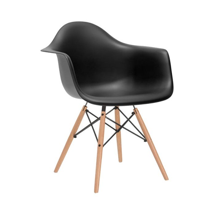 Cadeira Eames Eifflel com Braço Daw de Madeira com Assento Preto Preto