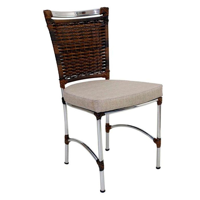 Cadeira em Alumínio e Fibra Sintética Jk Cozinha Edícula Argila e Fundo Palha Bege
