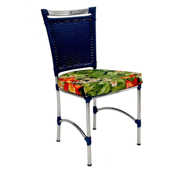 Cadeira Em Alumínio E Fibra Sintética Jk Cozinha Edícula Azul Dark E Branco Desenhado