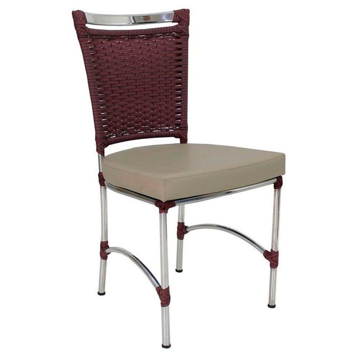 Cadeira Em Alumínio E Fibra Sintética Jk Cozinha Edícula Vinho Dark E Nautico Bege