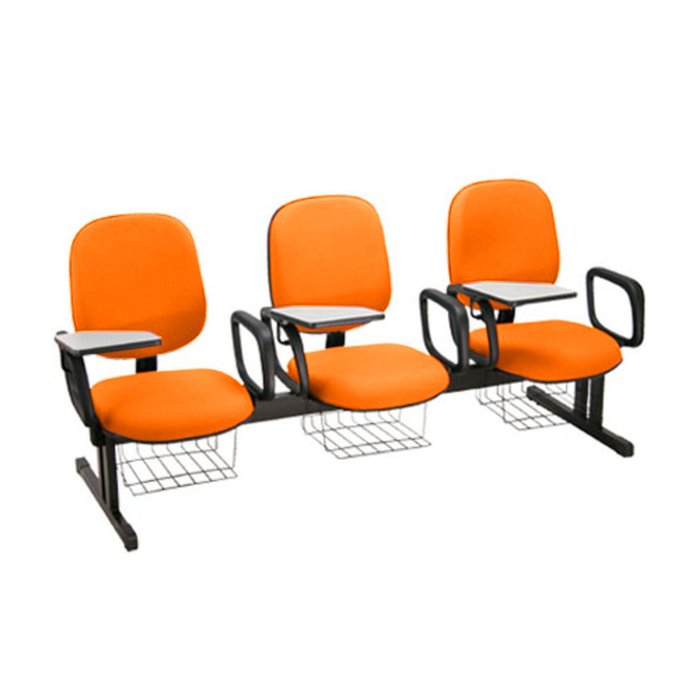 Cadeira Diretor Universitária com prancheta escamoteável em longarina para 03 lugares para Escolas Linha Uno - Tonalidade da Cor do Assento e Encosto: Laranja - Marca: Design Office Móveis - Revestimento do Assento e Encosto: Material Sintético