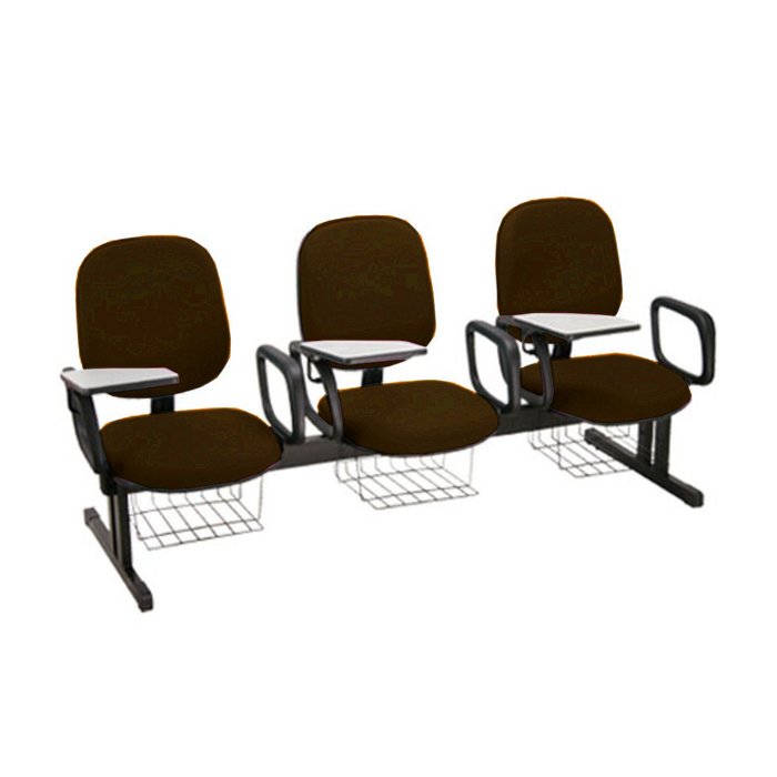 Cadeira Diretor Universitária com prancheta escamoteável em longarina para 03 lugares para Escolas Linha Uno - Tonalidade da Cor do Assento e Encosto: Marrom - Marca: Design Office Móveis - Revestimento do Assento e Encosto: Material Sintético
