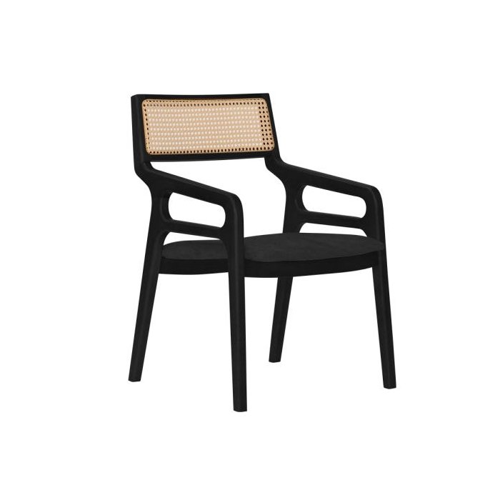 Cadeira em Madeira Chur Alto Padrão Ébano - Tecido Sintético Preto