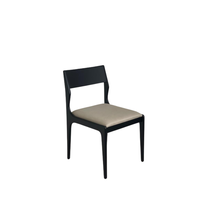 CADEIRA EM MADEIRA COM ASSENTO ESTOFADO AREIA. COR PRETA