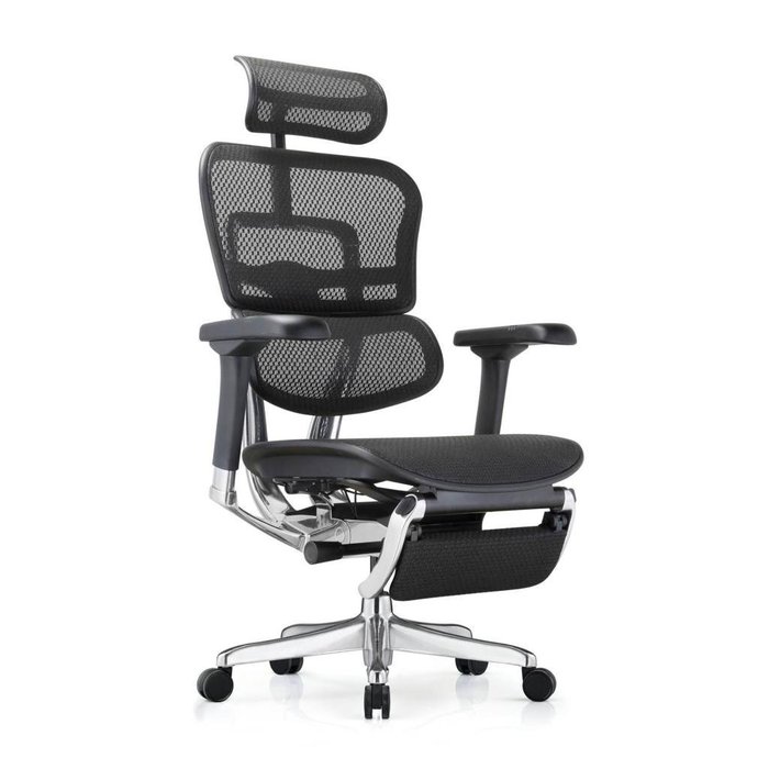 A cadeira Ergohuman v2 possui apoio para as pernas, se tornando um grande diferencial e também apoios de braços ajustáveis em altura, largura, profundidade e ângulo, oferecendo suporte adequado para os braços e ombros e reduzindo o estresse nessas áreas, estimulando uma postura saudável e minimizando a fadiga muscular.