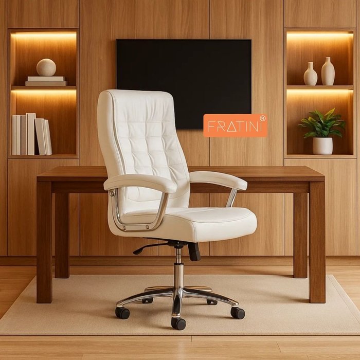 Cadeira Escritório Couro Presidente Molas Ensacadas Nr17 Califórnia Fratini Branco Branca