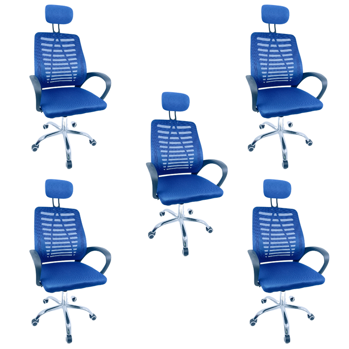 Cadeira Escritório Diretor Tela Mesh com Encosto de Cabeça - Azul e Preto - 5 + E-book