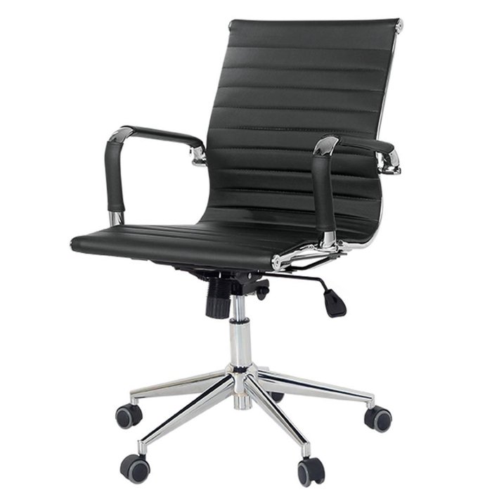 Cadeira Escritório Giratória Baixa Diretor Esteirinha Anm04d Anima Pu Preto Base Rodízio Cromado Preto