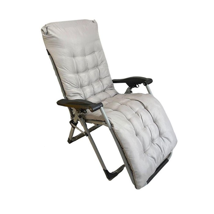 Cadeira Espreguiçadeira Decorativa Lazy Camping Acolchoada Reclinável Dobrável Creme G31 - Gran
