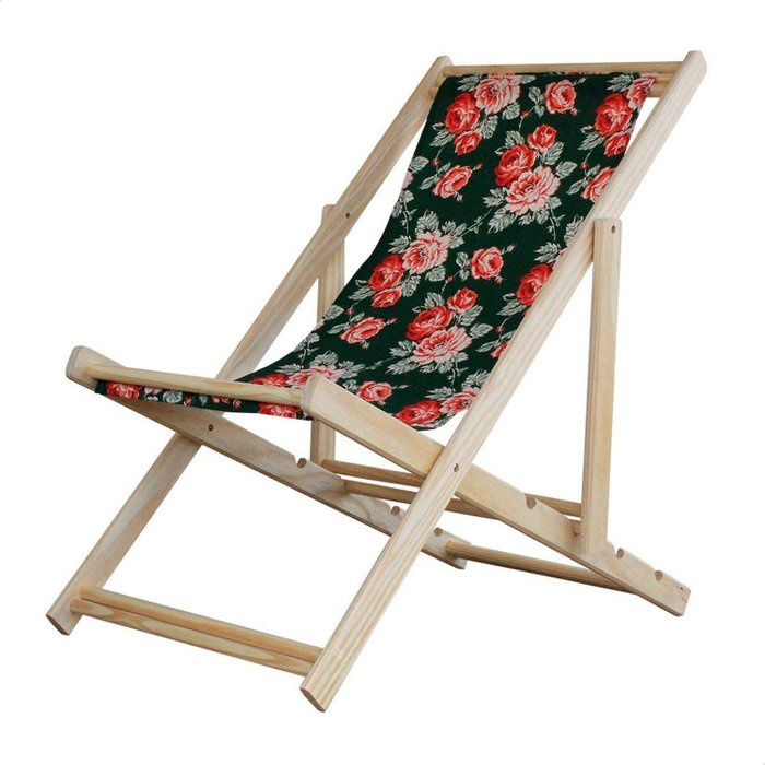 Cadeira Espreguiçadeira Dobrável Madeira Maciça Natural Verde Floral