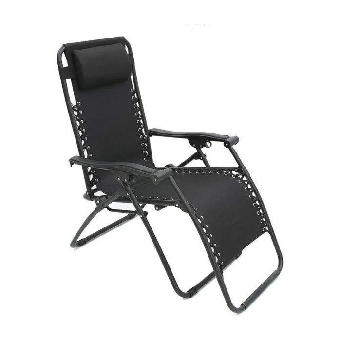 Cadeira Espreguiçadeira Praia Camping Regulagem Altura Encosto Cabeça Preta