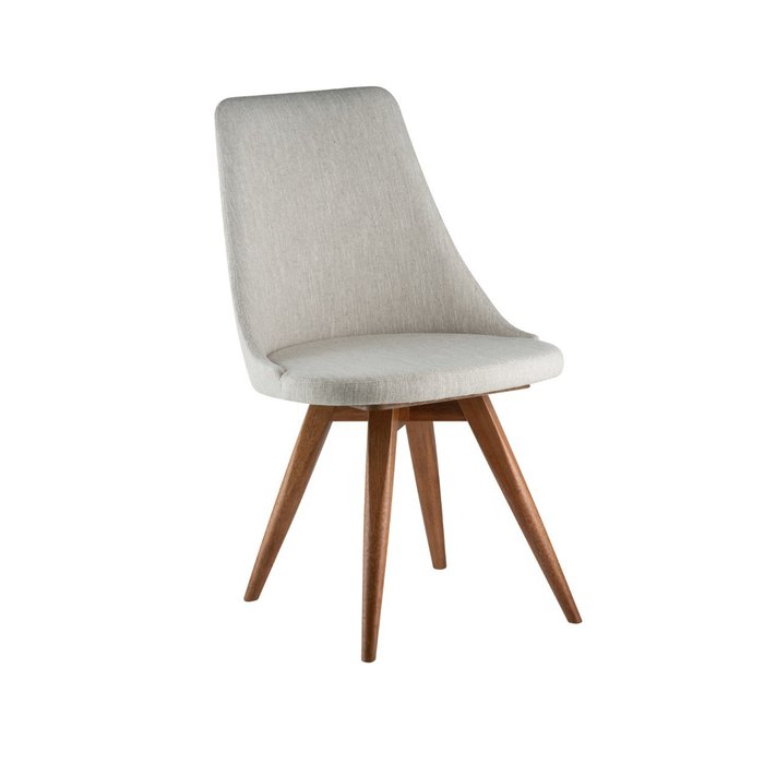 Cadeira Estof Giratoria Tecido Anti Gato Bege Madeira Amêndoa e Tecido Fendi 100% Poliester