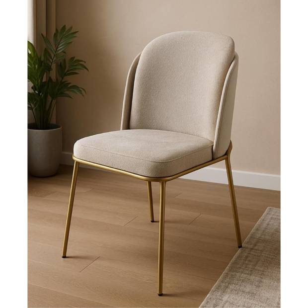 Cadeira Estofada com Encosto Curvo e Base em Aço Carbono – Luna Exclusiva Linho Lincoln Bege - Doura Dourado Automotivo