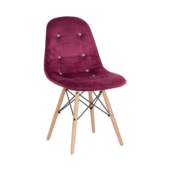 Cadeira Estofada Eames Botonê Veludo - Eiffel - Vinho - Bordô - Madeira Clara