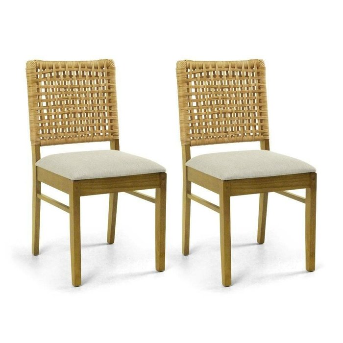 A cadeira Asti é feita em madeira maciça, seu encosto é em fibra sintética trançada, e o assento é estofado e revestido em linho bege. Essa cadeira de madeira e fibra é perfeita para completar um ambiente descontraído e acolhedor. Ela é vendida em par e é entregue montada, precisando apenas fixar o assento à estrutura.