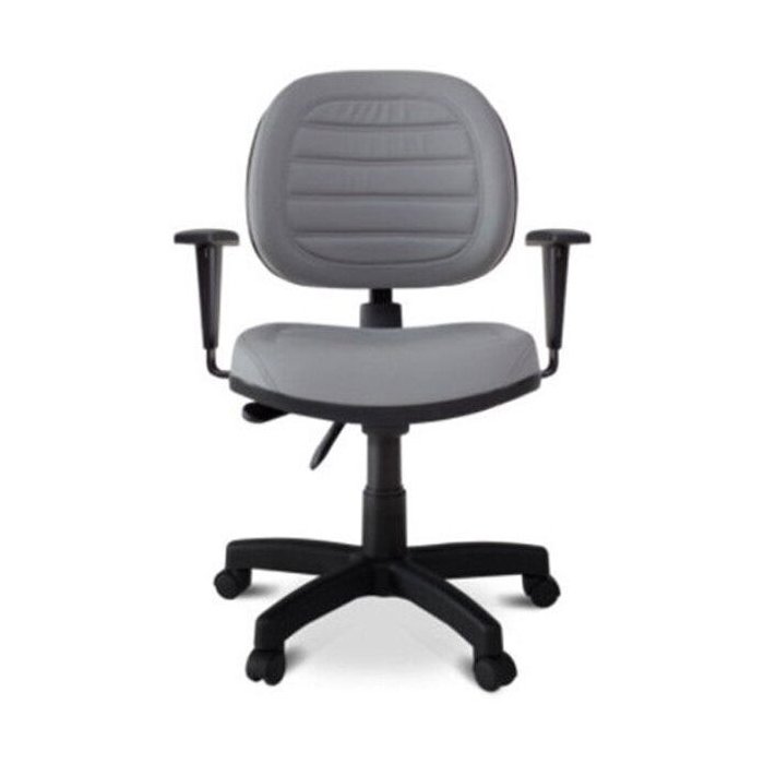 Cadeira executiva espaldar médio/baixo em madeira compensada de 12mm e espuma injetada com 45mm de altura. Base giratória tipo back-system, com regulagem de altura a gás. Costuras laterais (faixas). Costura central nas opções: gomada vermelha. Assento e encosto com capa de proteção em polipropileno**.