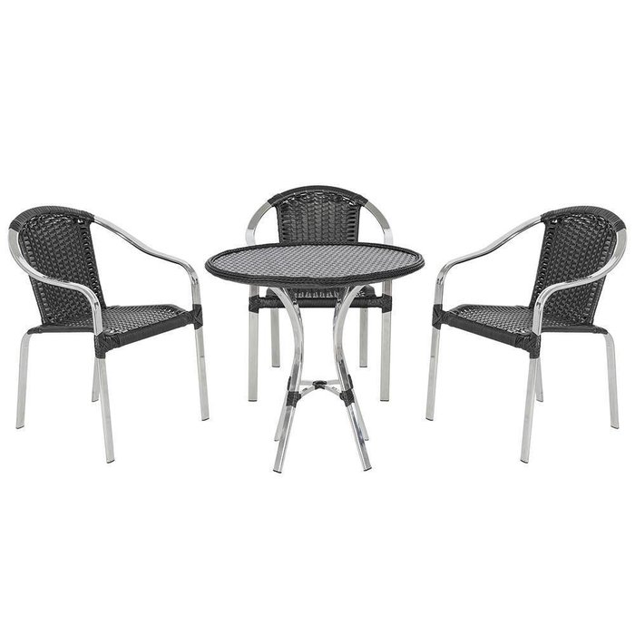 Cadeira De Area Externa Tóquio 3 Unidades E Mesa Tóquio, Aluminio E Fibra Sintetica - Preta