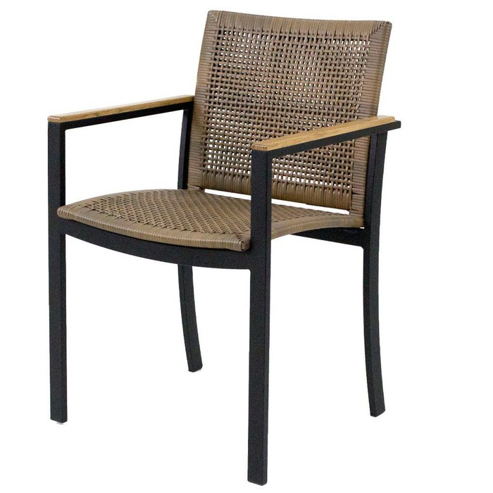 Cadeira Fibra Alumínio Braço Detalhe Madeira Jardim Piscina Alumínio preto fosco e fibra