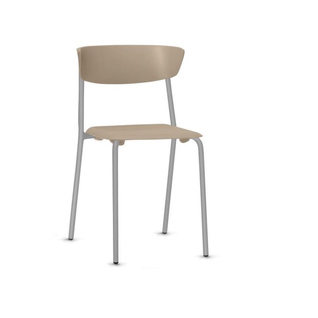 Material Assento/Encosto: Assento e encosto em Polipropileno injetado, 100% reciclável e estrutura de tubo circular de aço carbono com ponteiras injetadas em polipropileno.